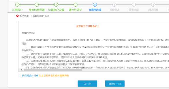 本页涉及到的相关协议是必读的,阅读完才可以点击下一步,请拖动滚动条,阅读完开户相关协议。