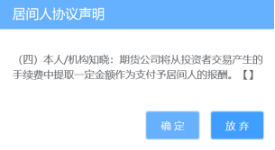 如有居间,需要额外签署“期货居间投资者风险告知书”,居间人协议声明需要逐条确定。